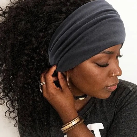 Pour le sport ou le yoga : Opte pour un bandeau cheveux sport en tissu extensible qui garde tes mèches en place, même pendant le gainage.