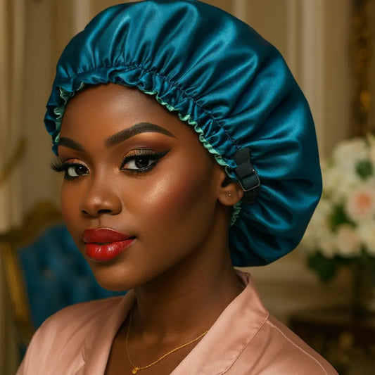 Découvre maintenant notre sélection de bonnets en soie cheveux afro, lisses, longs ou bouclés et prends soin de ta couronne, même en dormant.