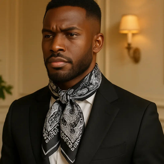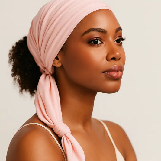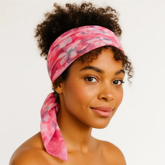 Tu peux le nouer façon turban, l’utiliser en bandeau, l’enrouler autour d’un chignon ou l'intégrer dans une tresse. Sur cheveux lâchés ou attachés, l’effet est immédiat : stylé, affirmé, et protecteur.